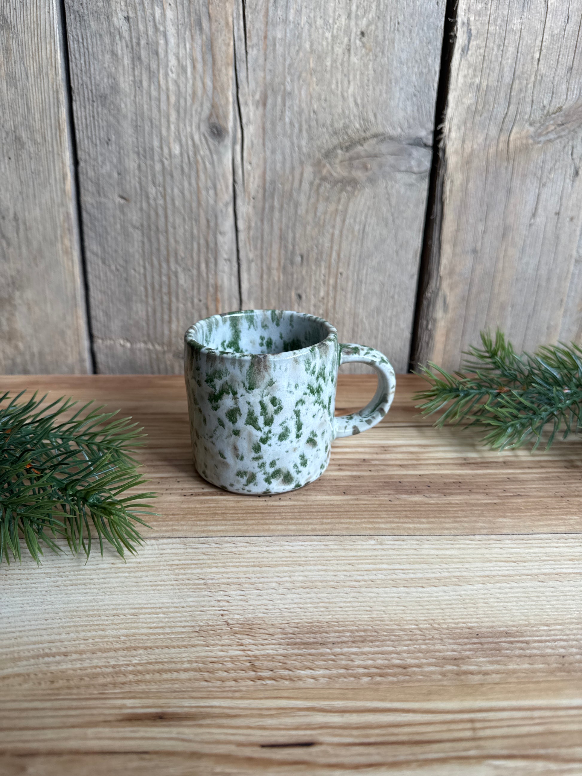 In sanftem Off-White-Green Mélange gehalten, zeigt sie ein lebendiges Sprenkelmuster, das jede Tasse zu einem kleinen Unikat macht. Ideal für Espresso, Cappuccino oder den ersten Kaffee am Morgen – stilvoll, gemütlich und einfach schön anzusehen.