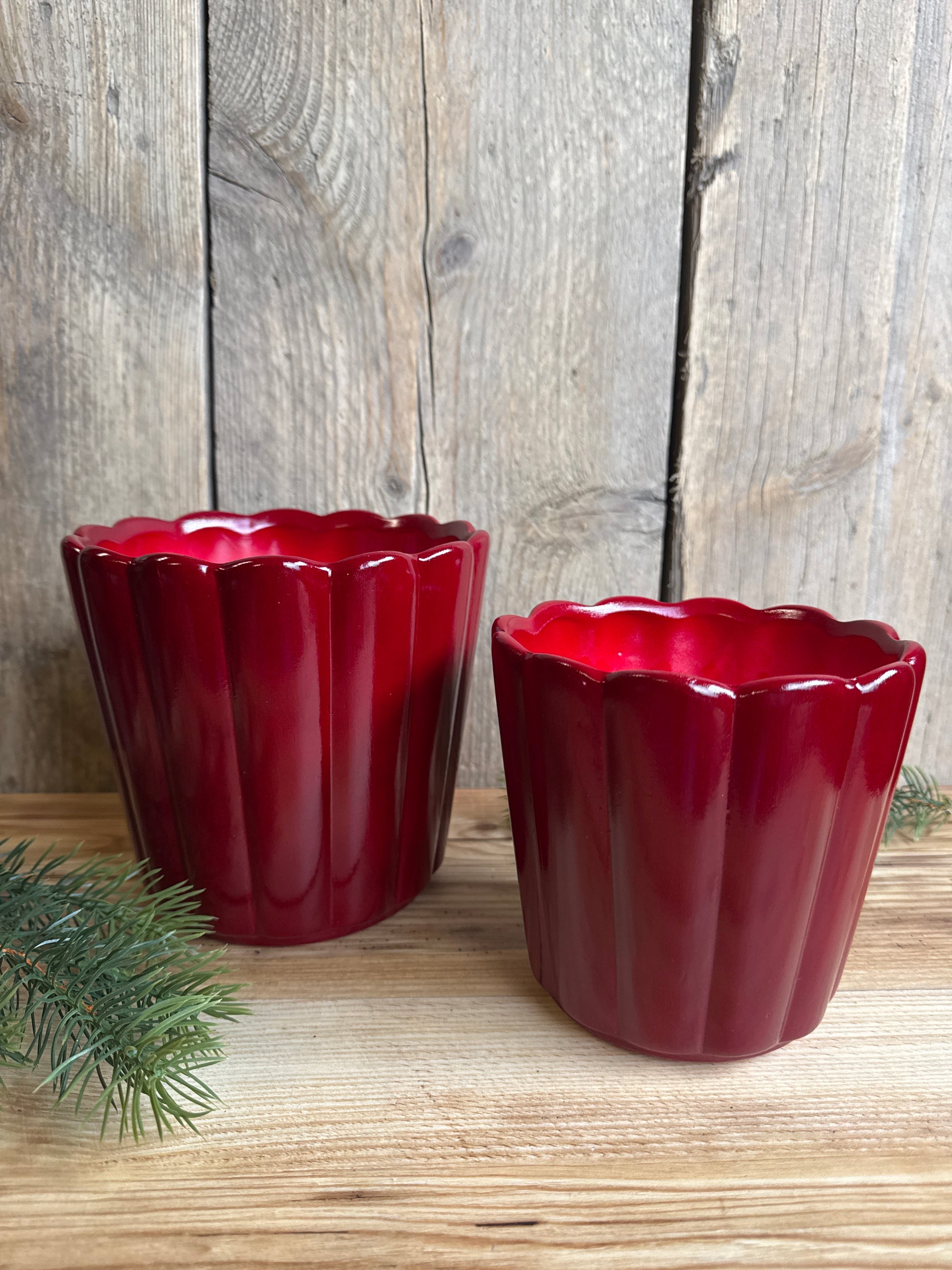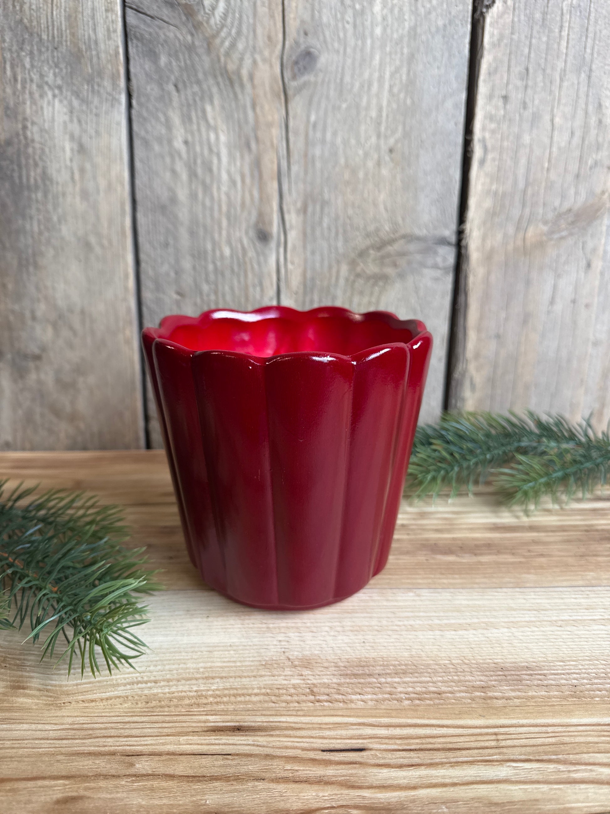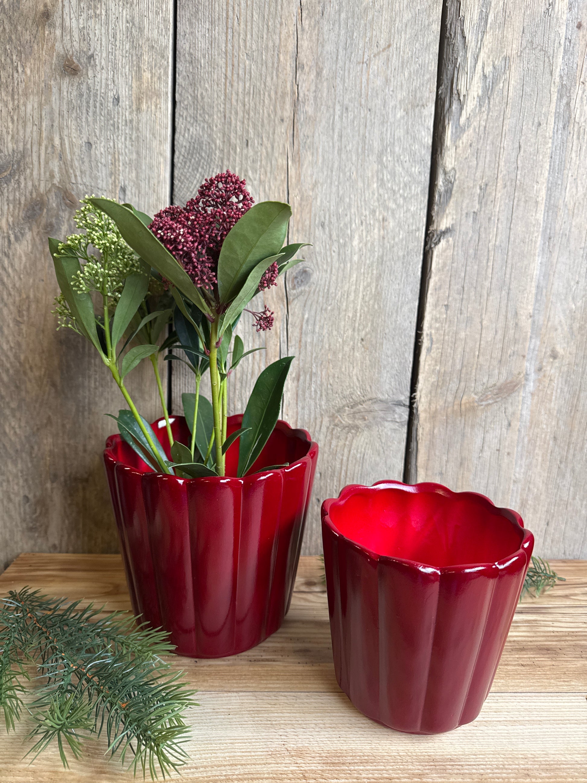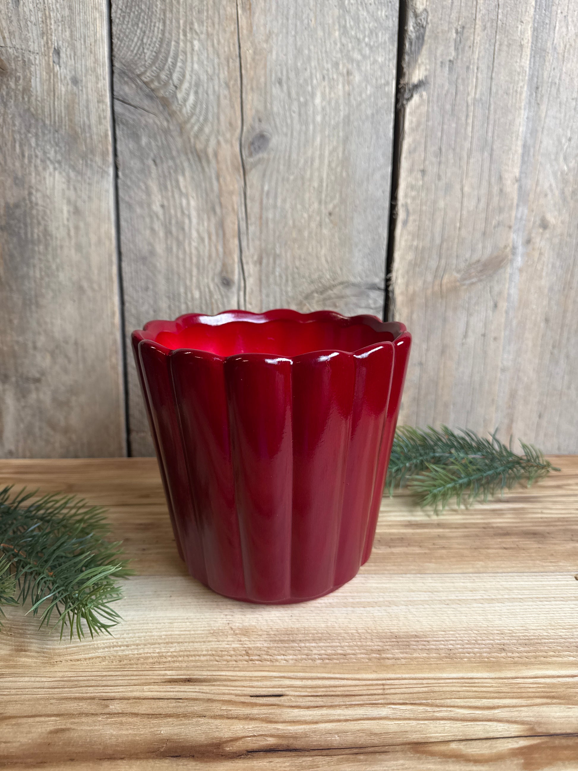 Durch seine leicht geschwungene Form und die glänzende Glasur wirkt er modern und dennoch klassisch – ideal für festliche Pflanzenarrangements oder als stilvoller Akzenttopf das ganze Jahr über.