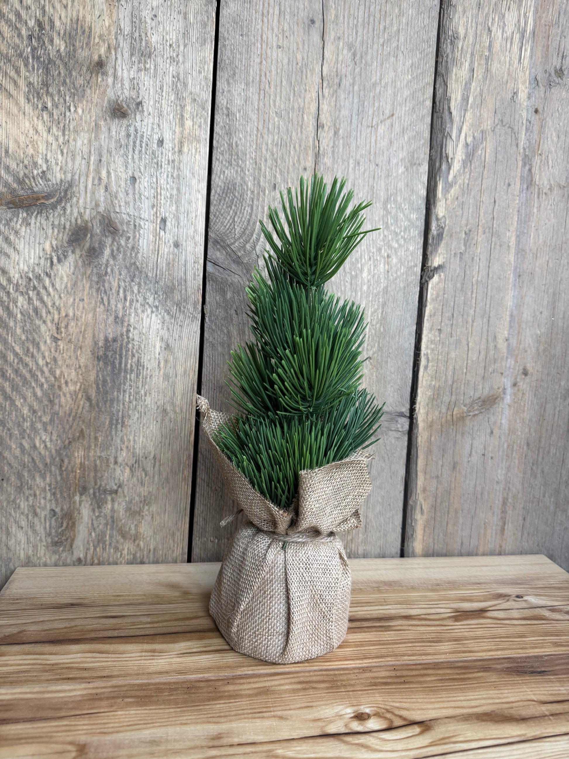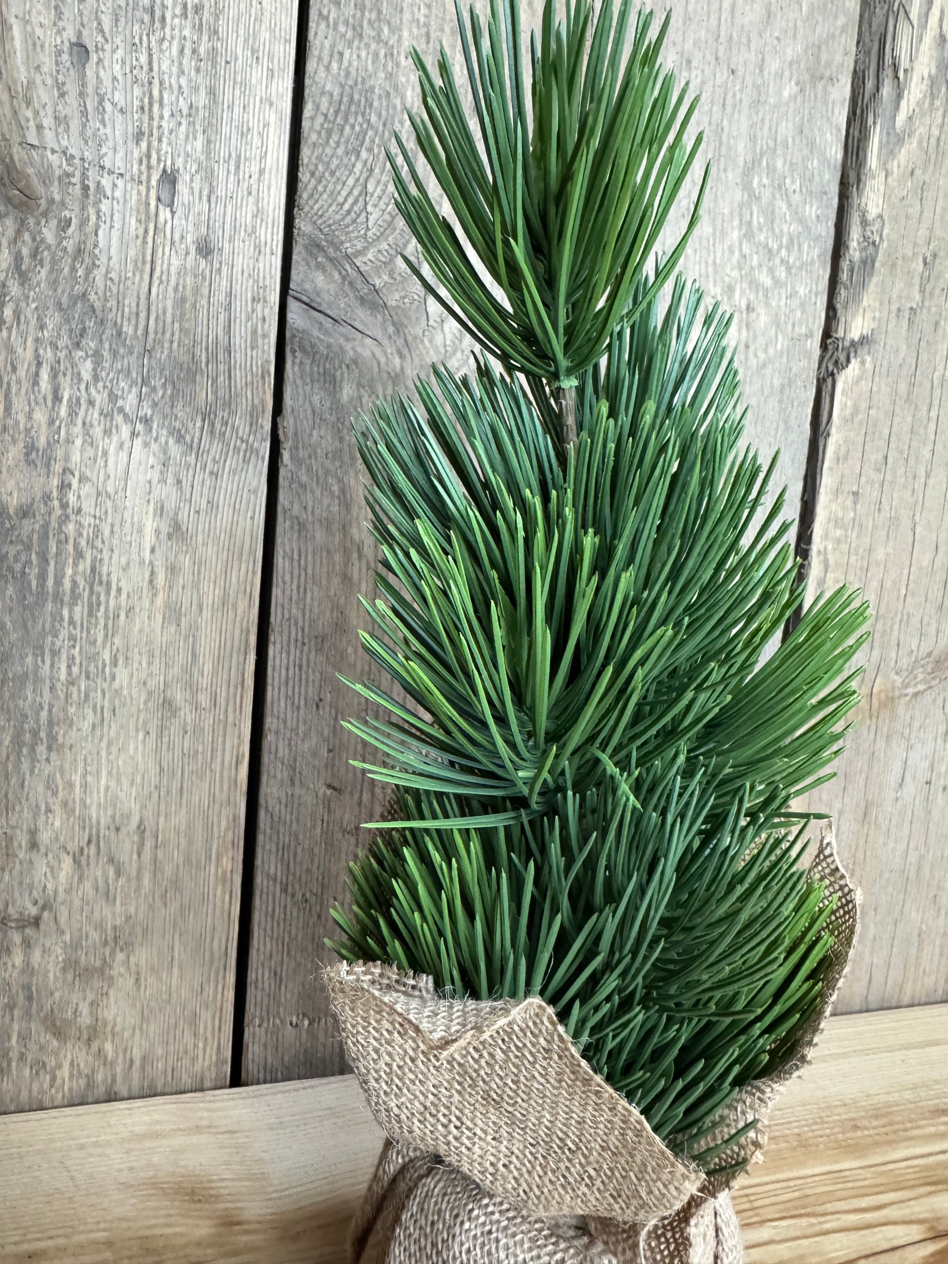 Diese detailgetreue Kiefer im Jutesack bringt natürlichen Charme in dein Zuhause – ganz ohne Nadeln oder Pflegeaufwand.