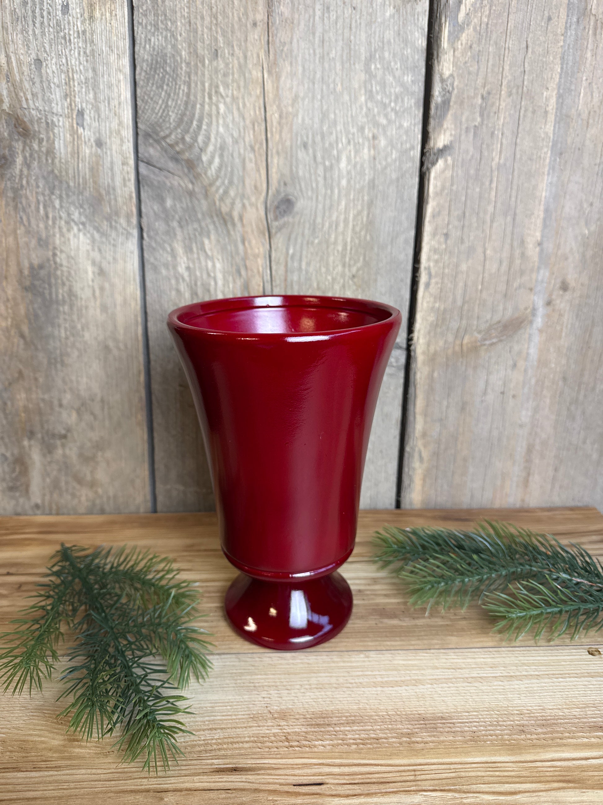 Der MERYL Pot von Wikholmform ist ein edler Übertopf aus glasiertem Ton in einem intensiven, warmen Rot.