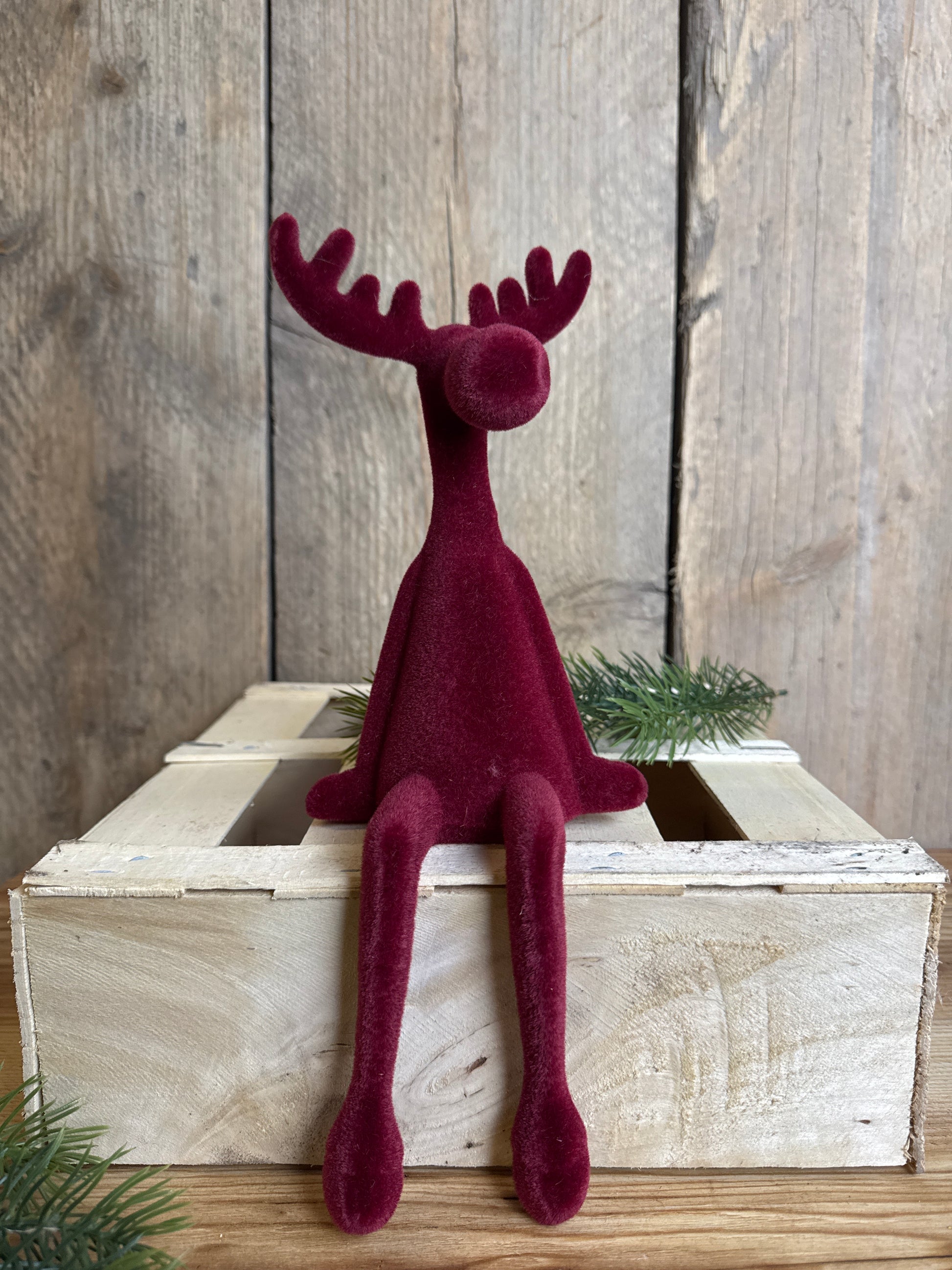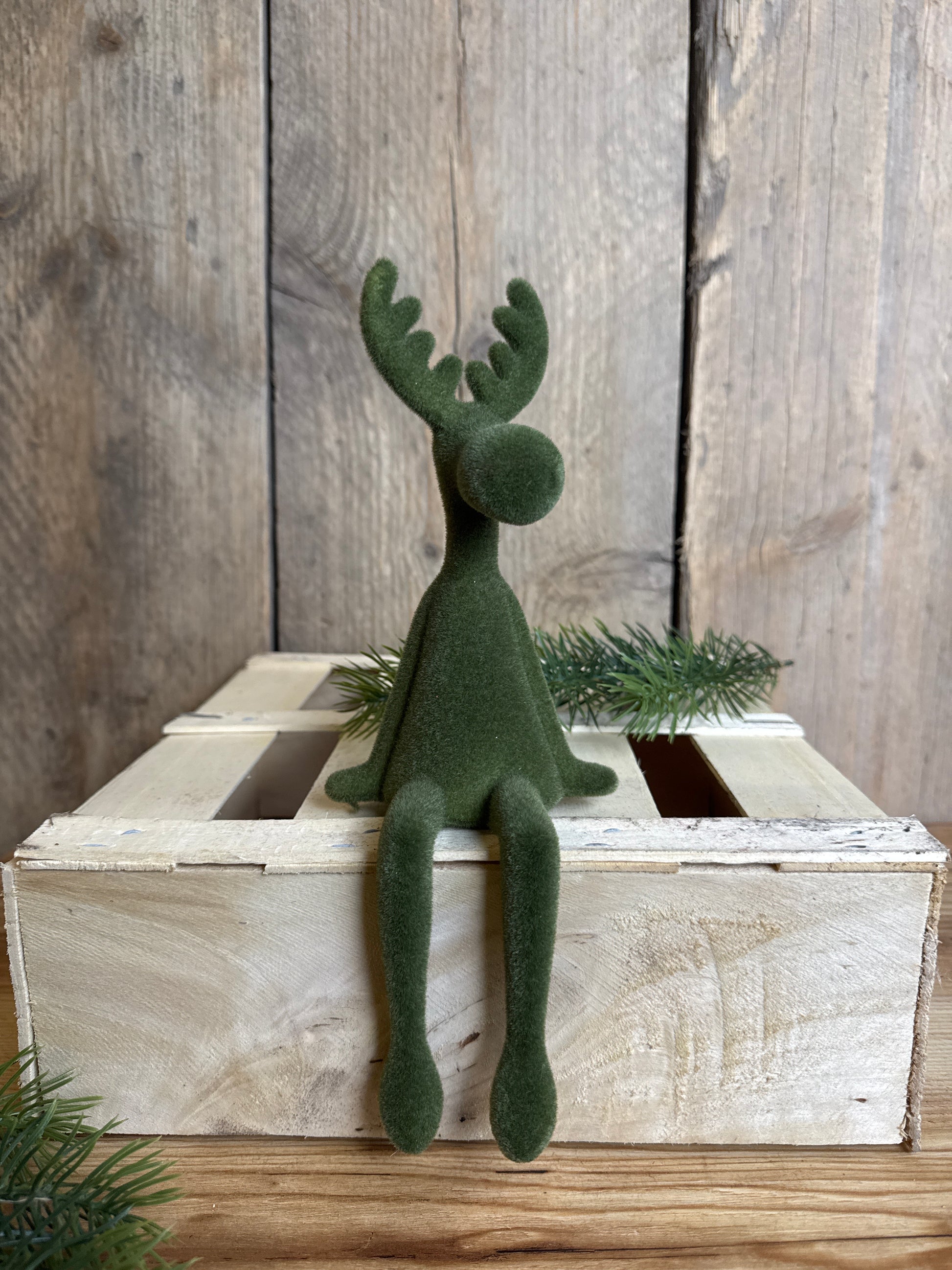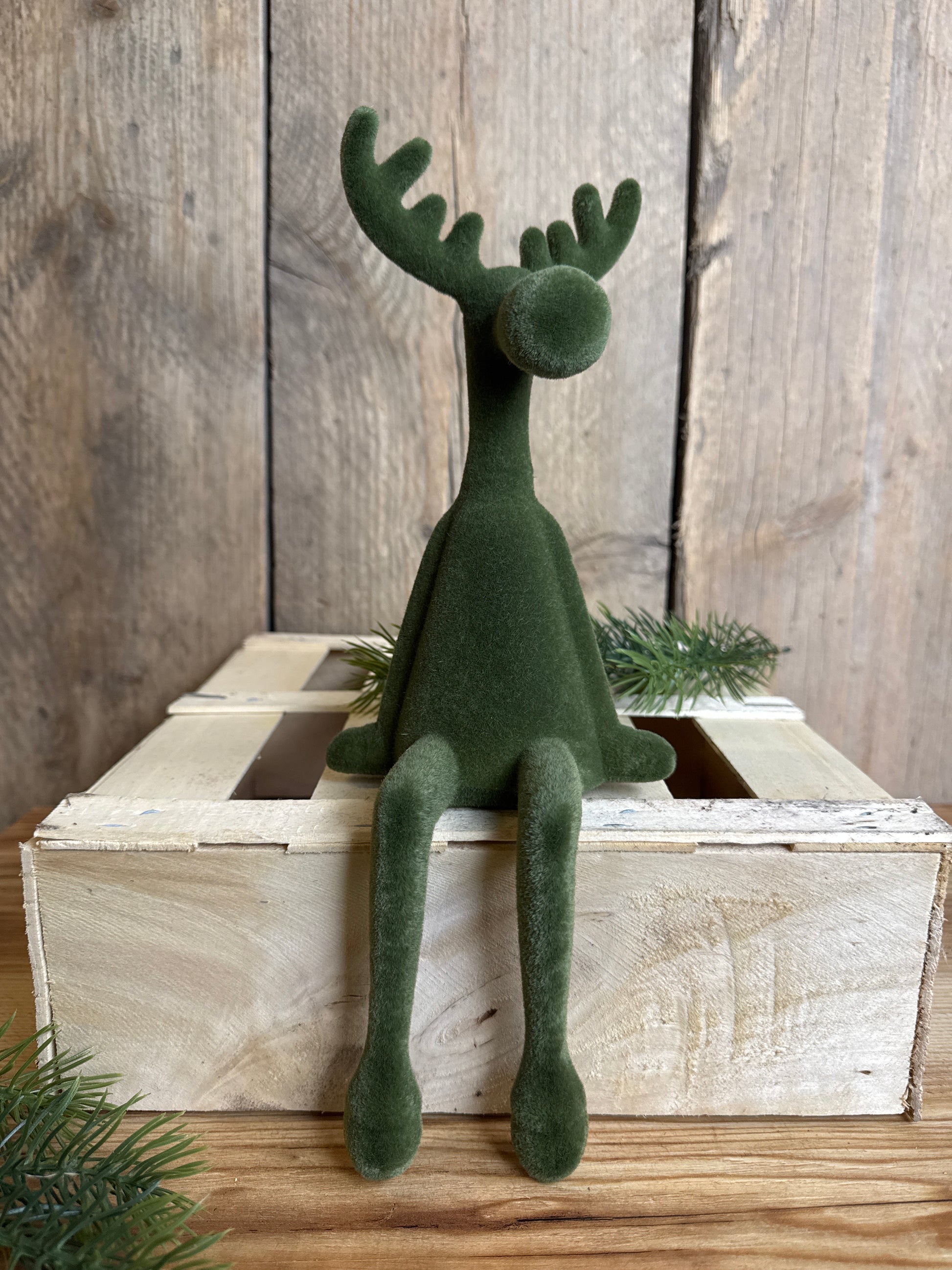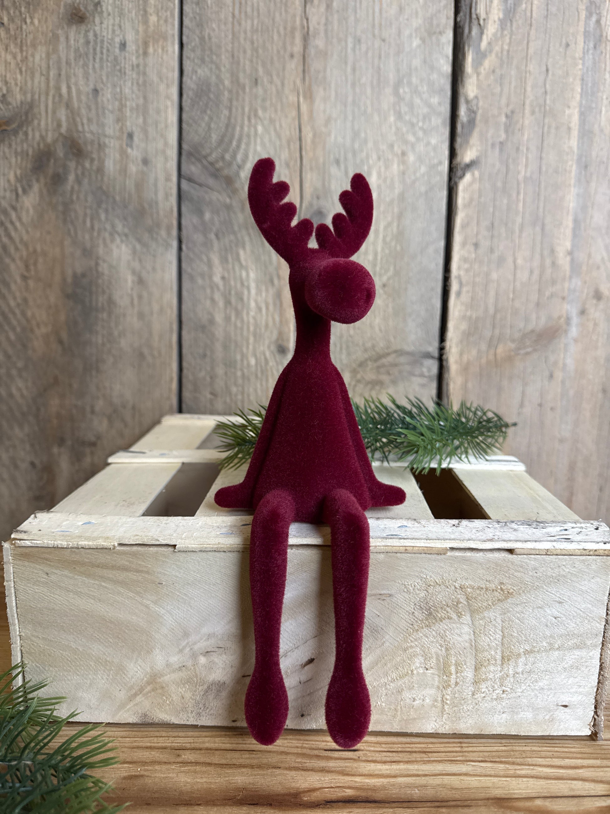 Rentier sitzend – Geflockte Dekofigur in Samtoptik