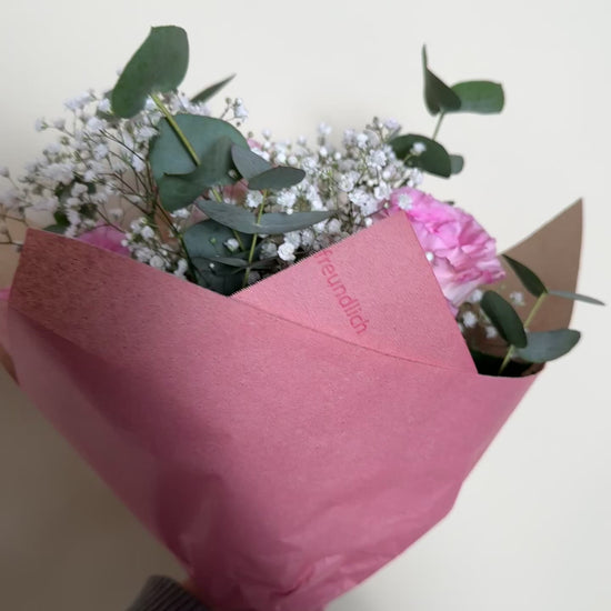 Jeder Strauß wird frisch von Hand gebunden und stilvoll verpackt.