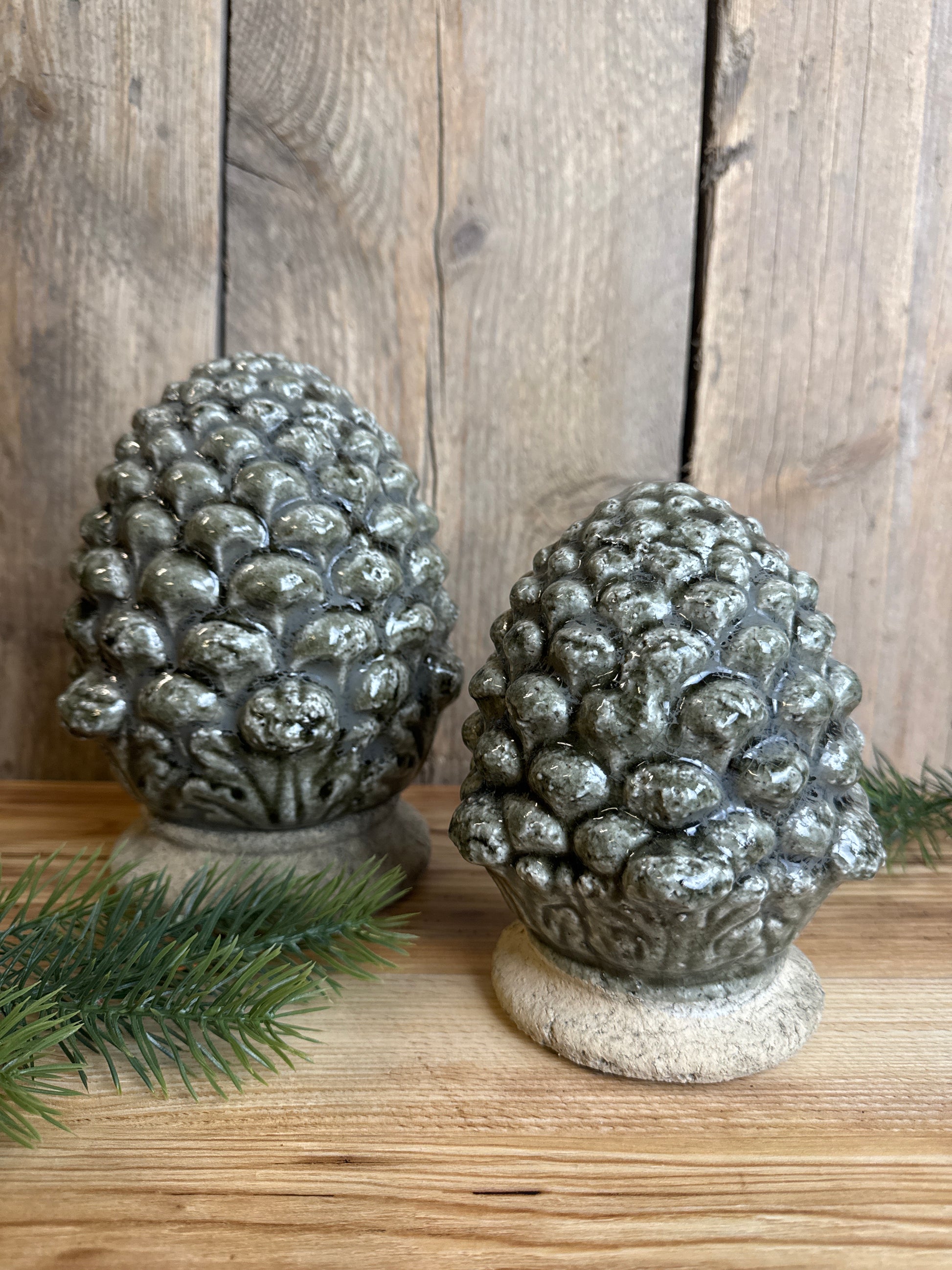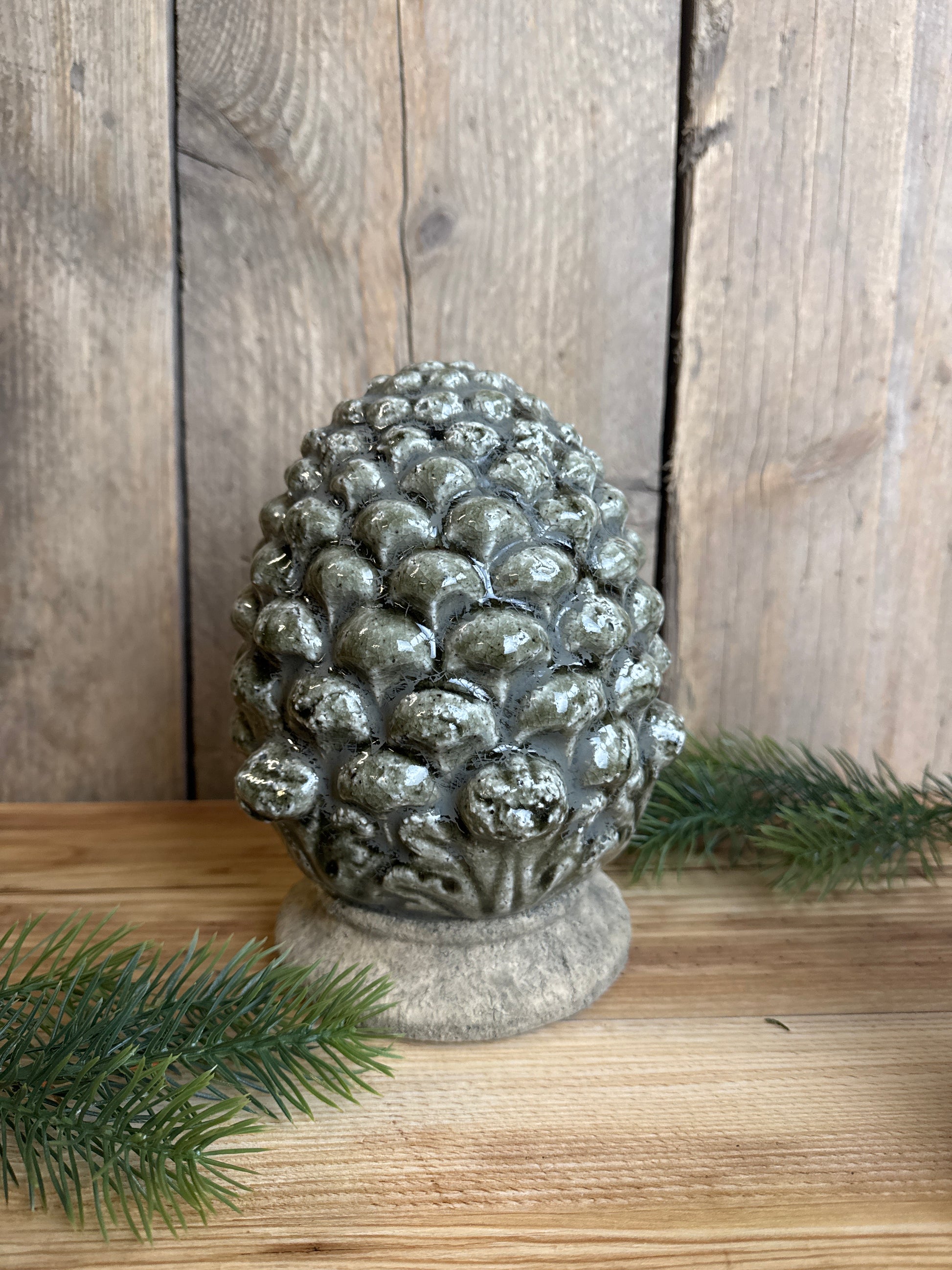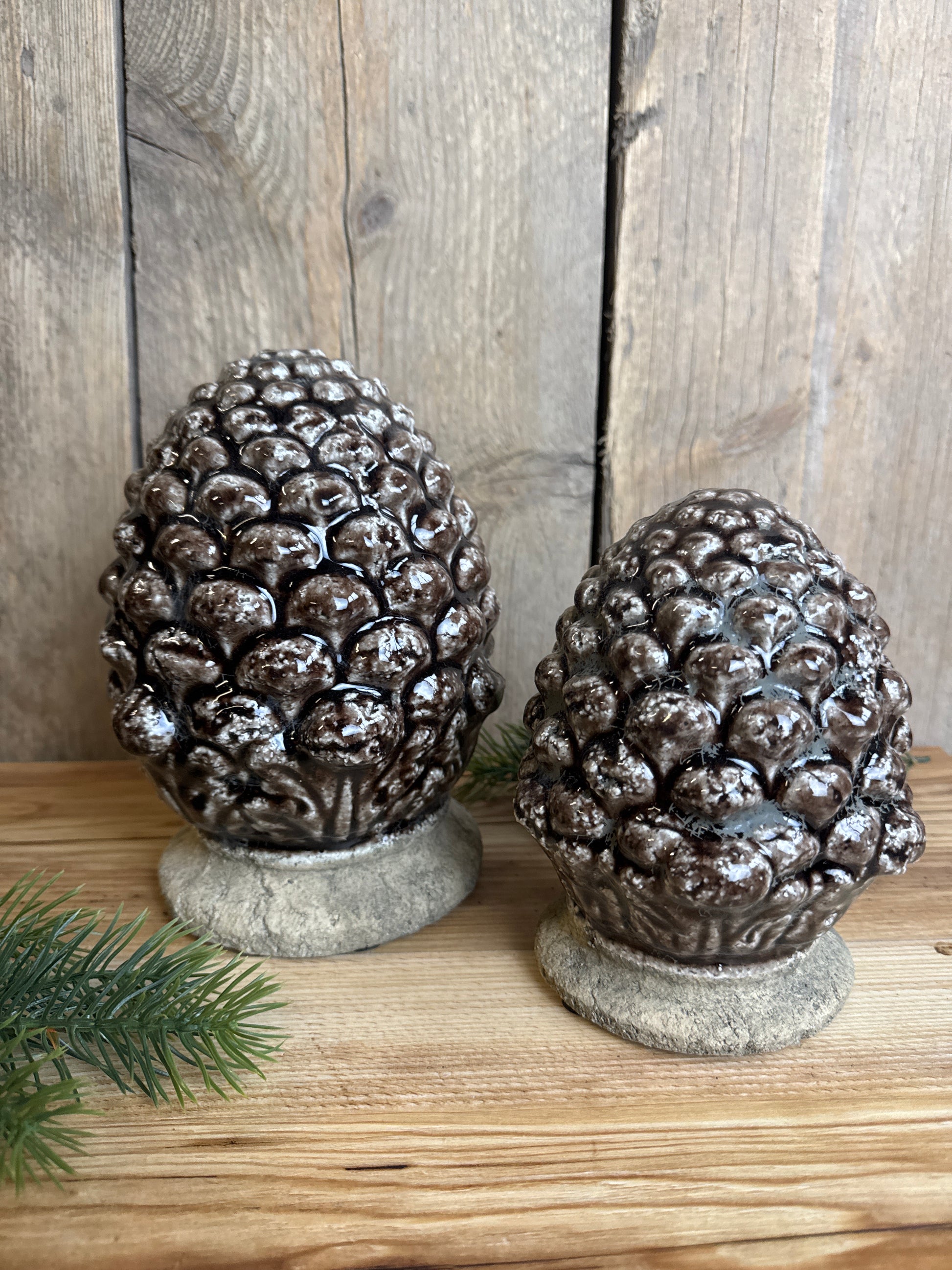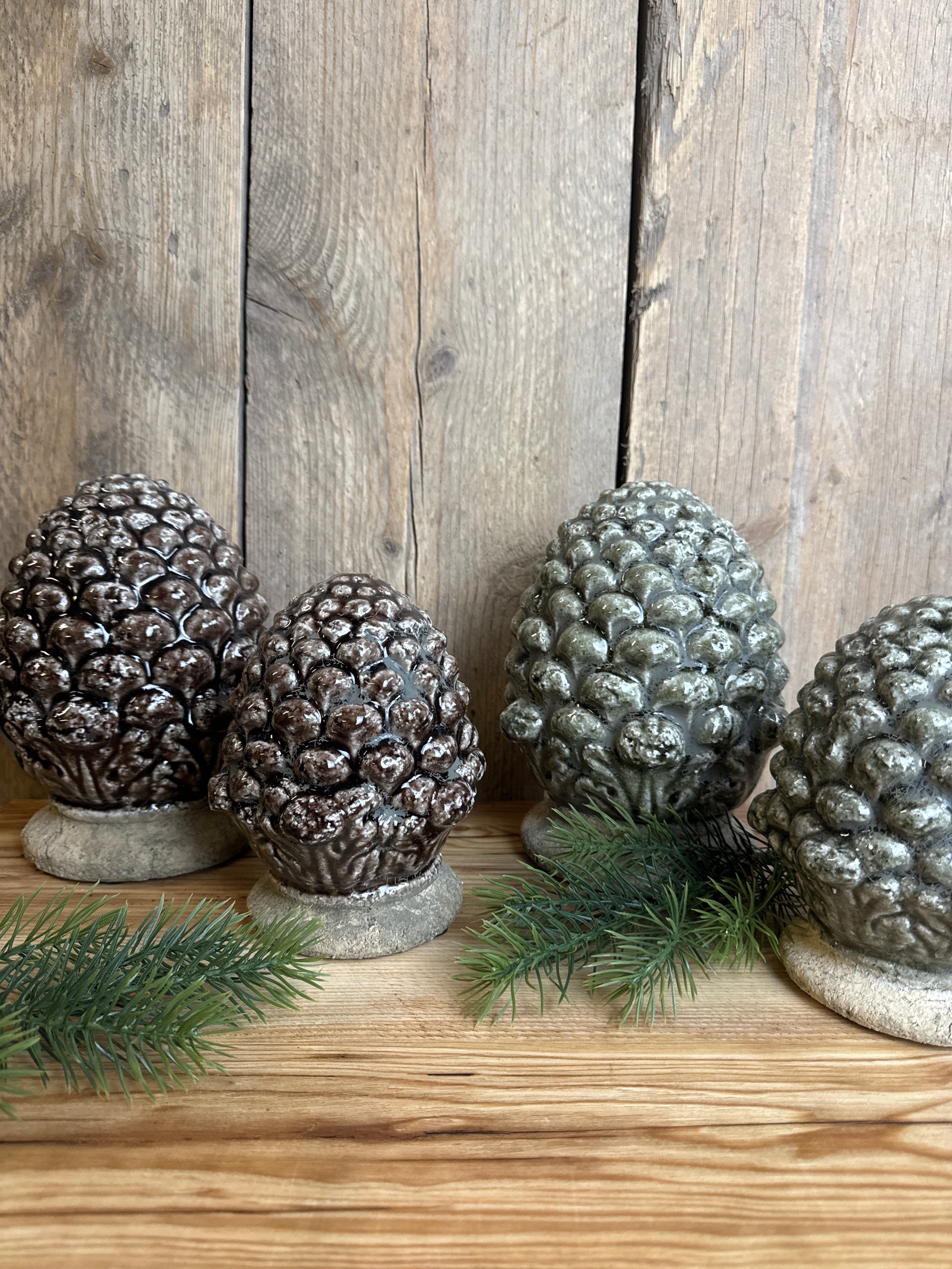 Diese massiven Steingutzapfen sind echte Hingucker! Ob einzeln oder im Set dekoriert – sie bringen natürliche Winterstimmung in jedes Zuhause.
