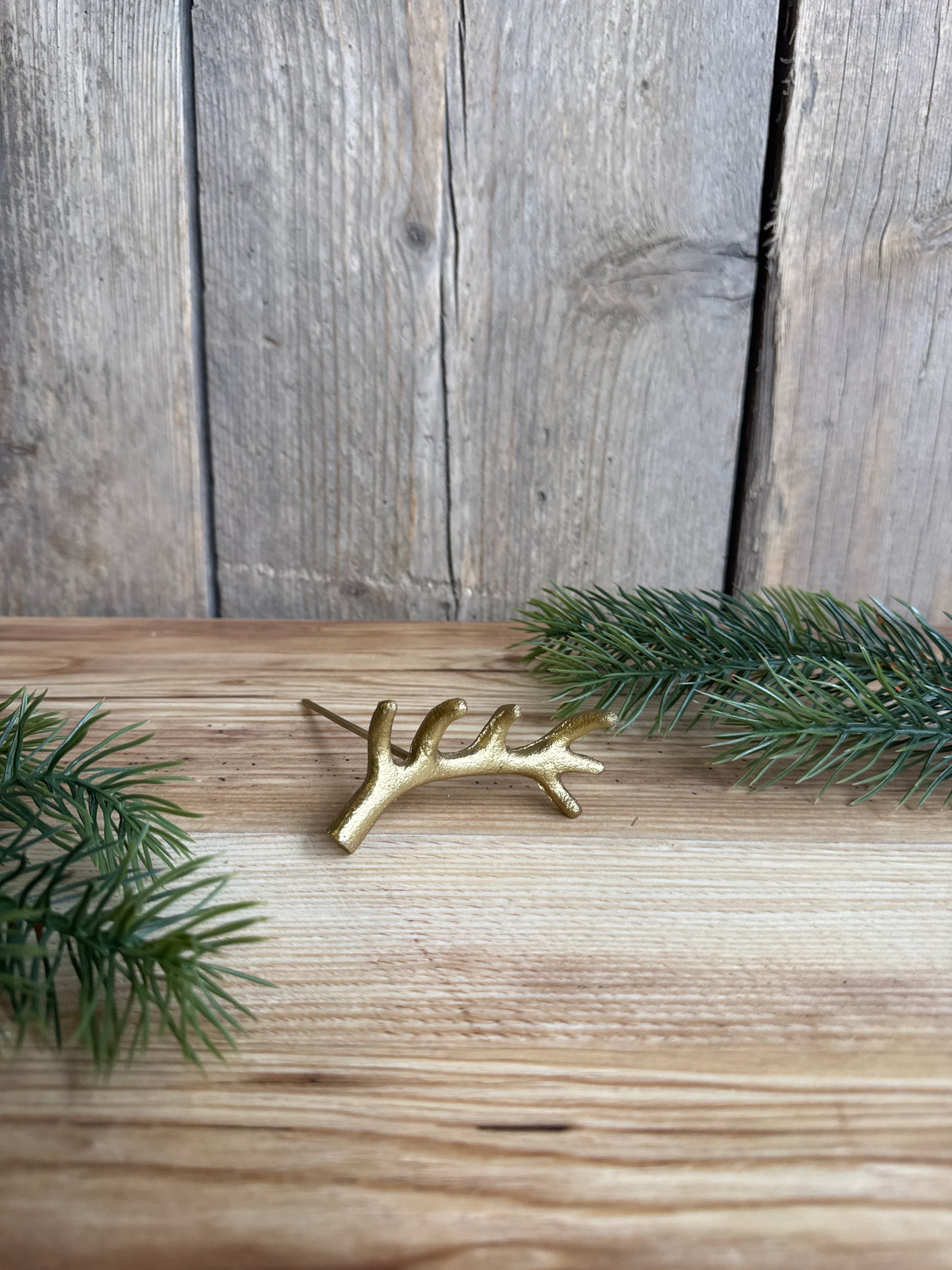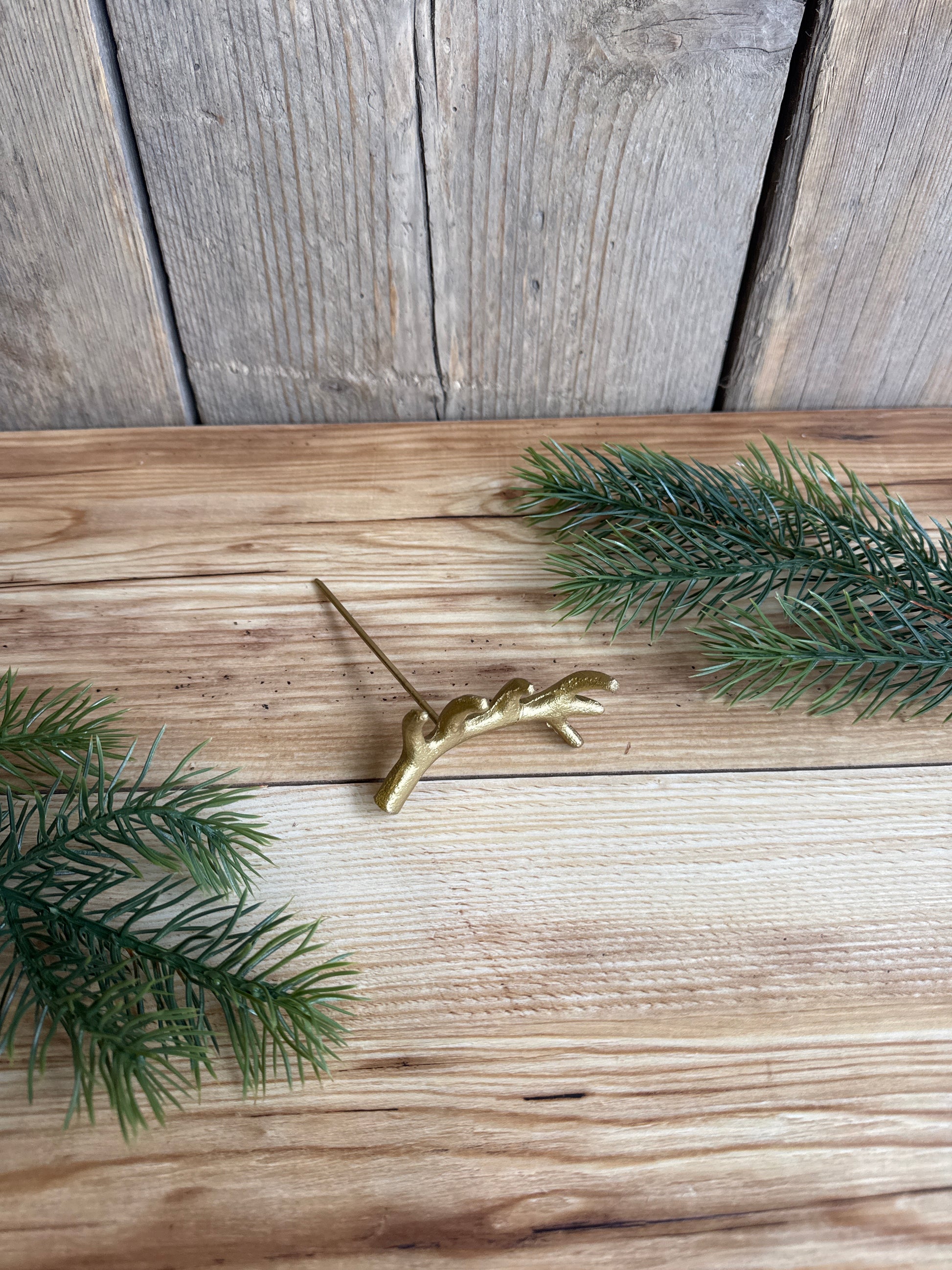 Ein elegantes Deko-Element der Marke Wikholmform, das jedem Arrangement einen edlen Touch verleiht. Das goldene Geweihhorn ist mit einem praktischen Stecker versehen – ideal, um es in Adventskränze, Gestecke oder Schalen zu integrieren.