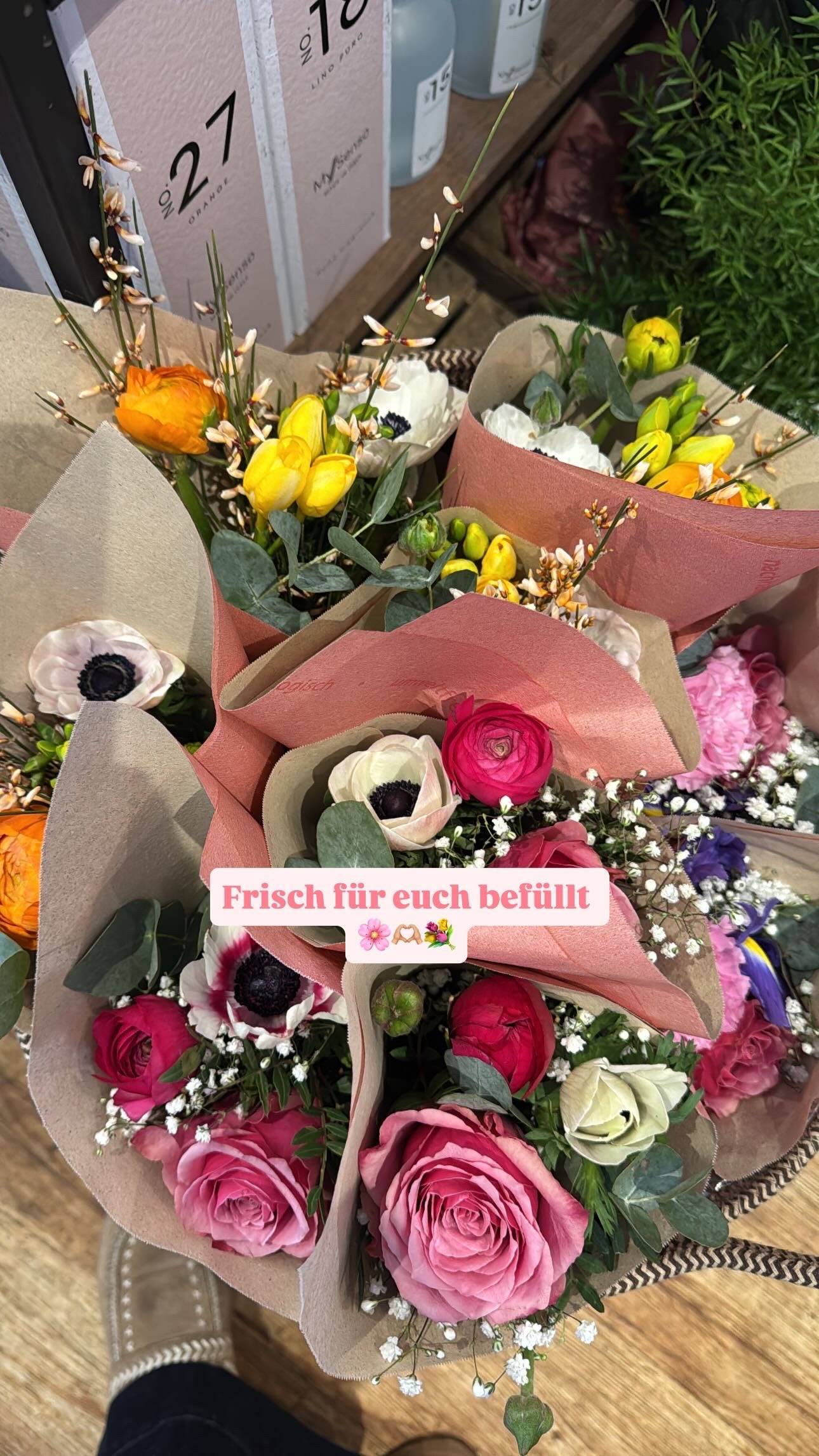 Jeder Mini-Strauß wird frisch gebunden – Farbwünsche können gerne angegeben werden.