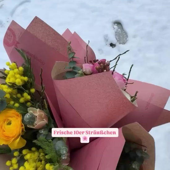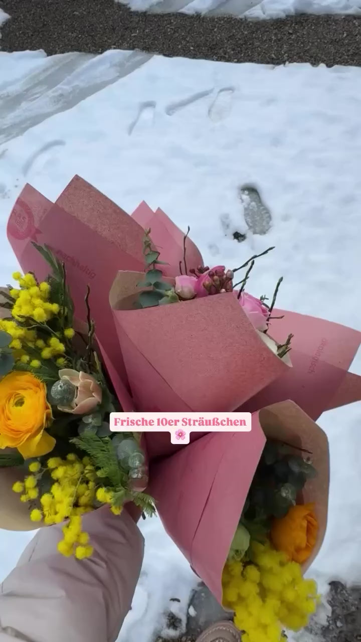 Kleine saisonale Blumensträuße in wechselnden Farbvarianten und Blütenauswahl.